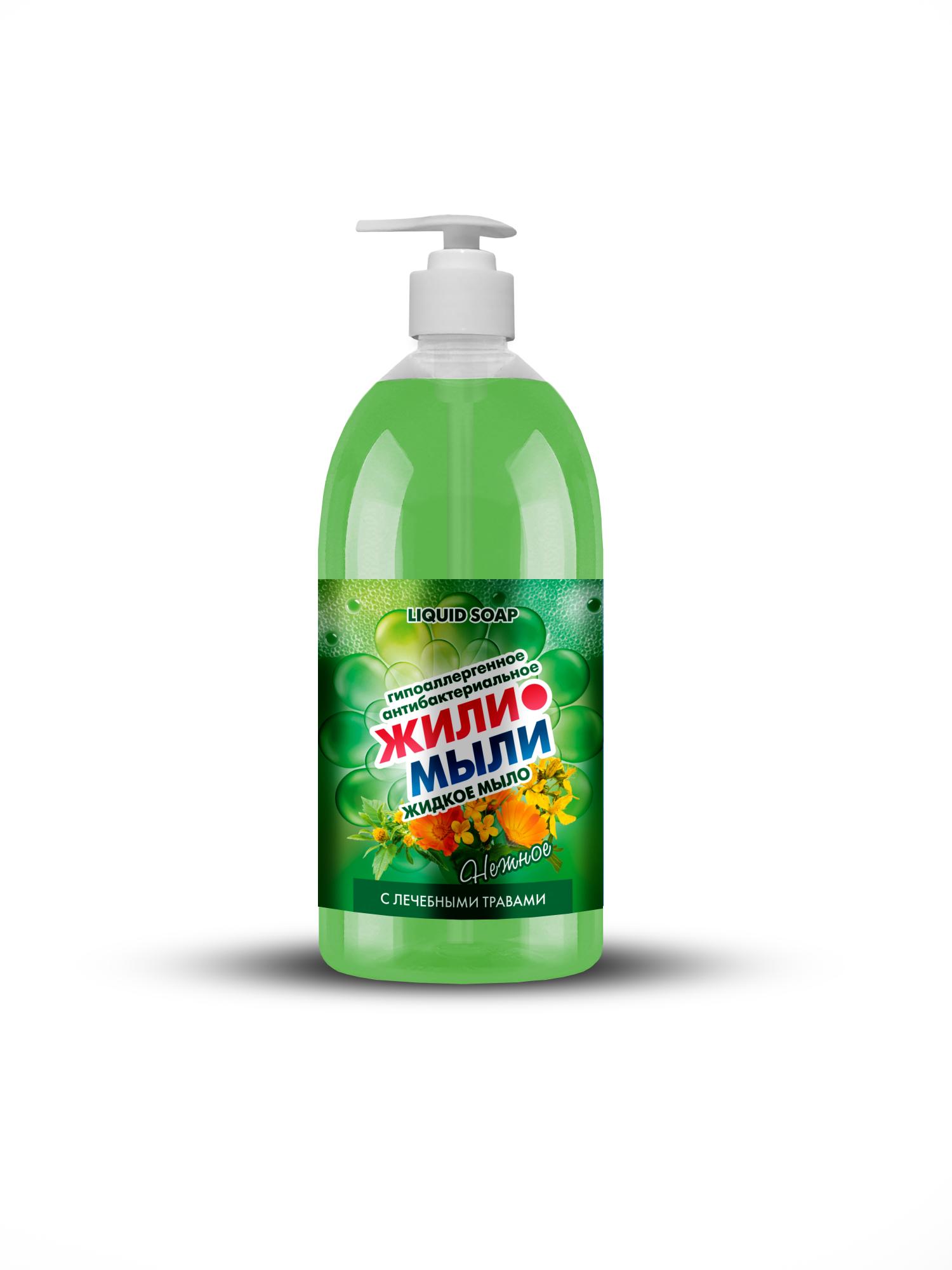 Жидкое мыло «‎Жили-Мыли» Антибактериальное с Лечебными травами 1 л, Дозатор, Флакон