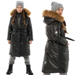 ПОДАРОК! Шапка двойной вязки в цвет пальто и мембранные краги из основной ткани, на утеплителе холлофан 120 с подкладкой из флиса. размерный ряд на рост от 134-140 до 158-164