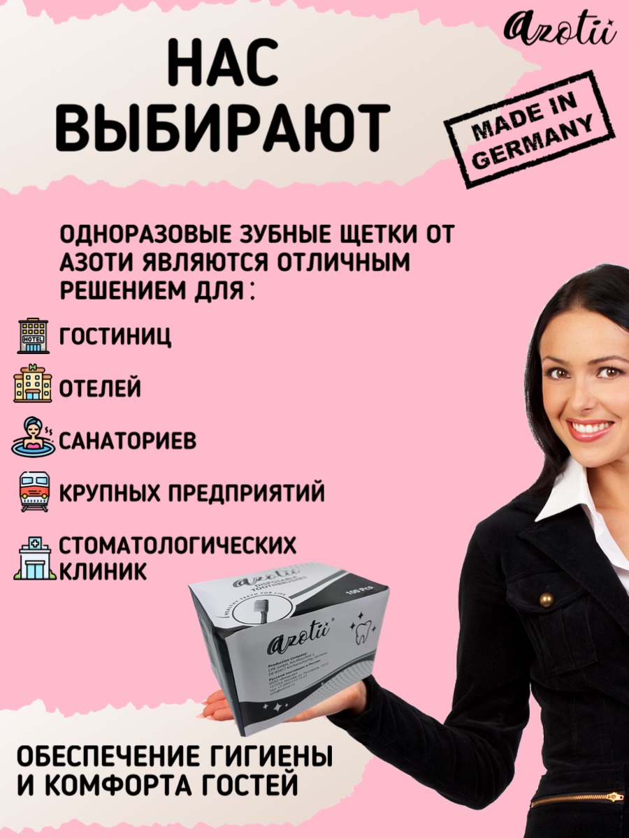 Идеально для использования в отелях, домах отдыха и гостиницах. Удобно в дороге, во время путешествий. Наши зубные щетки будут полезны всегда. Скажи «ДА» свежести и гигиене полости рта. У ваших зубов блестящее будущее!