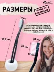 РАЗМЕРЫ щетки: Длина 18.2 см. Размеры рабочей поверхности: 28 х 10 мм. Длина щетины 12 мм. Средняя жесткость.