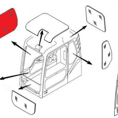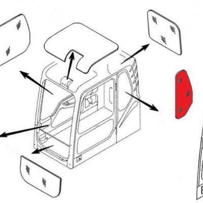 Стекло кабины правое (триплекс) 903-00072A DOOSAN / DAEWOO DX14...