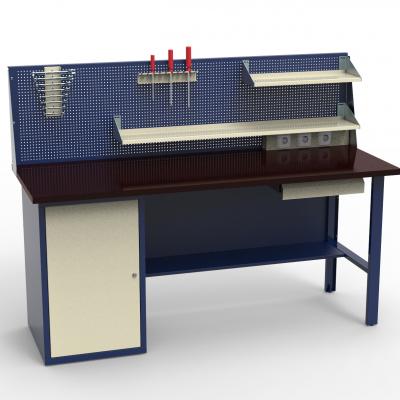 Стол монтажный с тумбой и фанерной столешницей и экраном инстру...