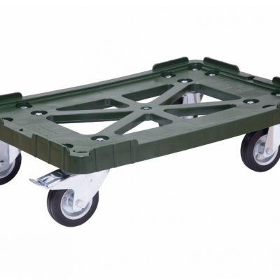 Тележка для ящика — T-508-3 з, зелёный п/э 600х400 чёрные резин...