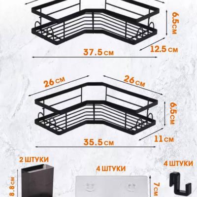 2 полки угловые черные настенные универсальные для ванной и кух...