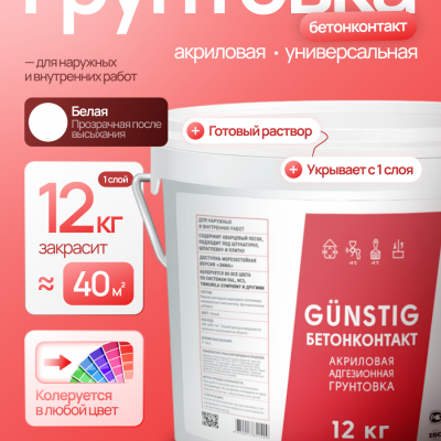 Грунтовка бетоноконтакт ВД-АК (12кг) Gunstig
