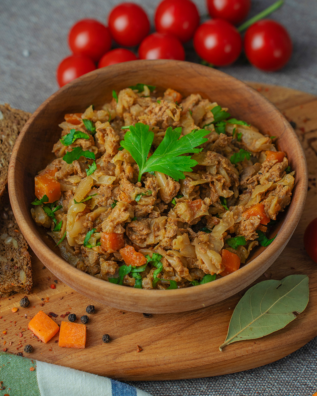 В ассортименте: первые блюда, вторые блюда, мясо тушеное.