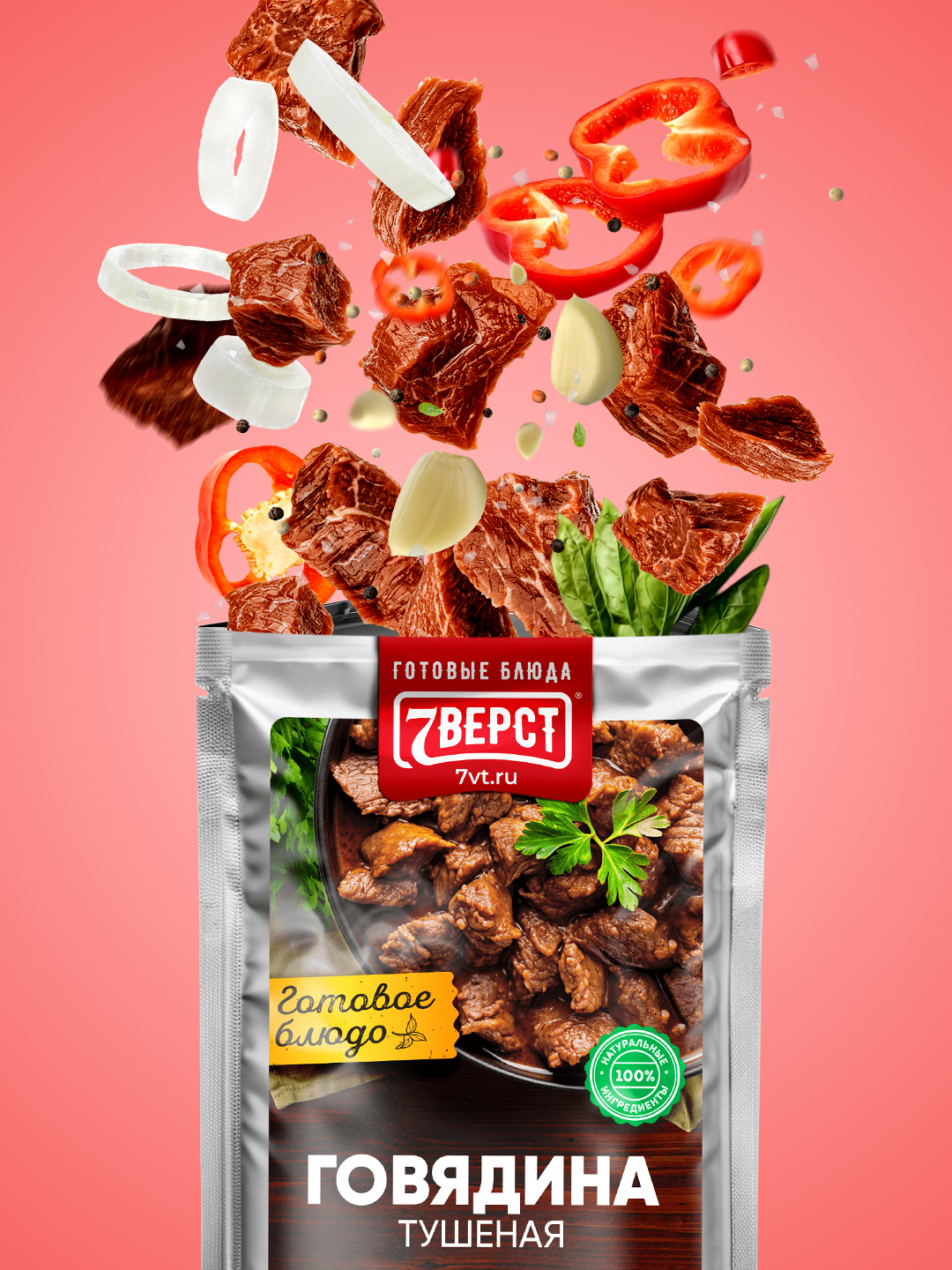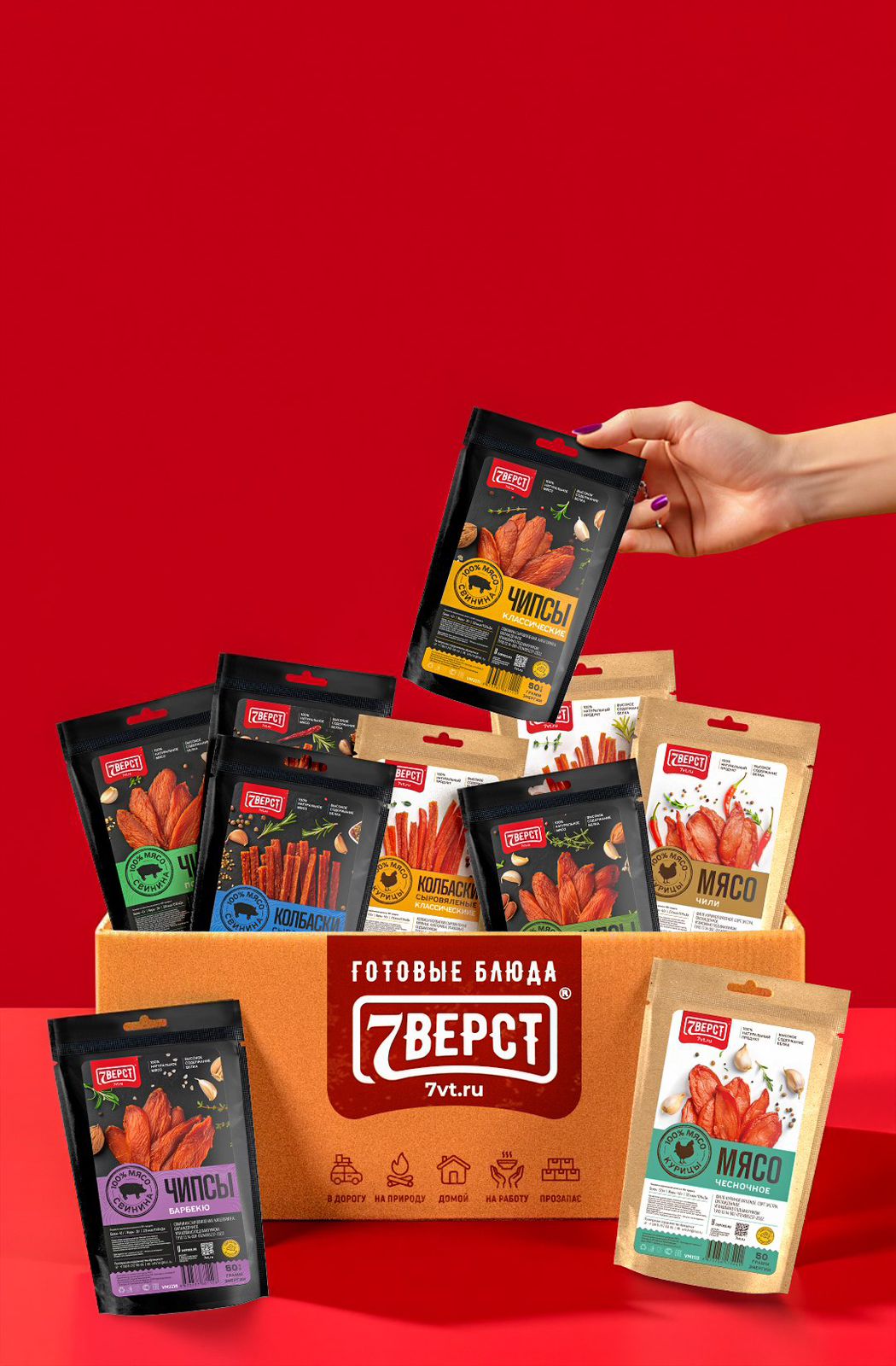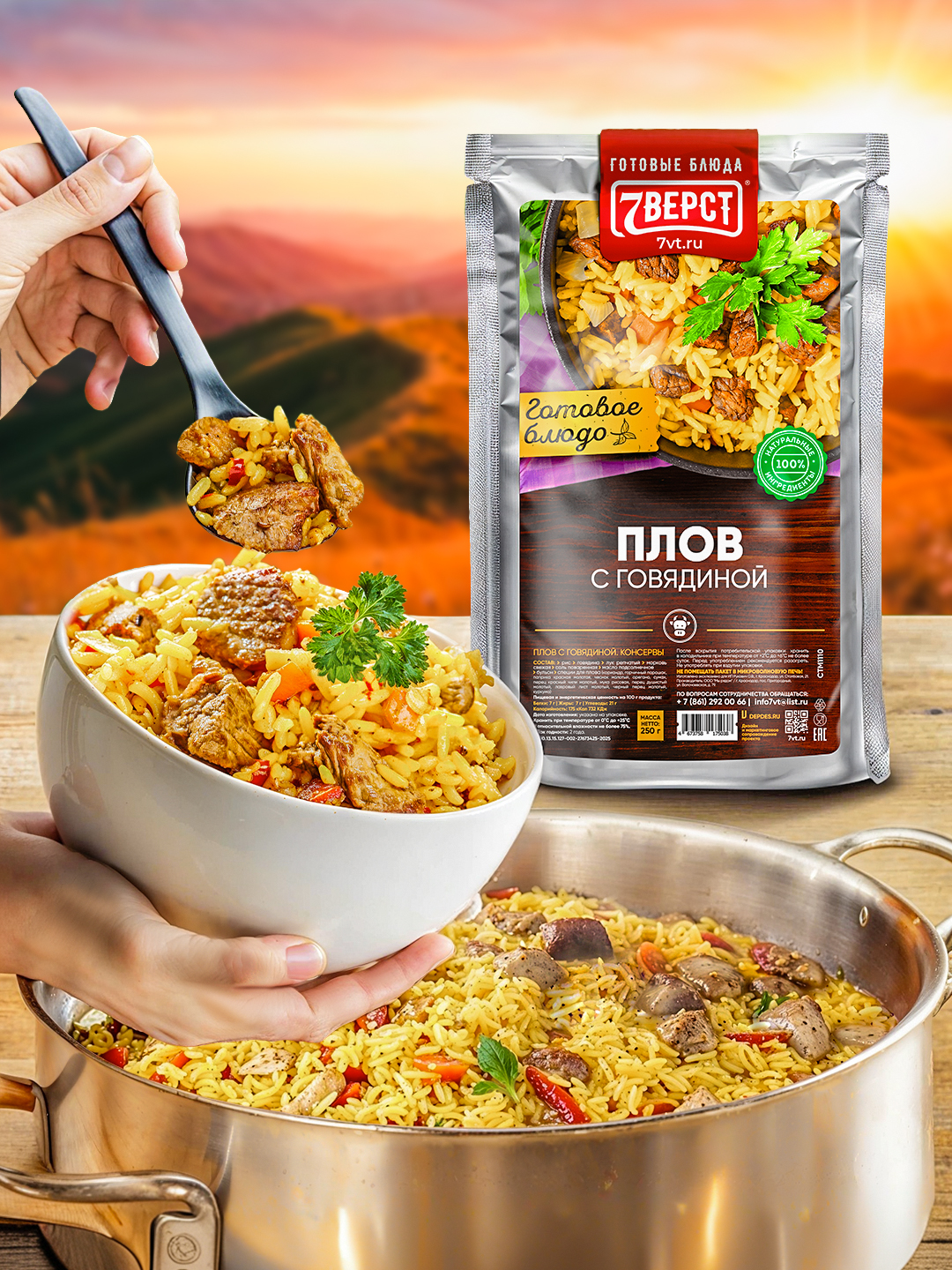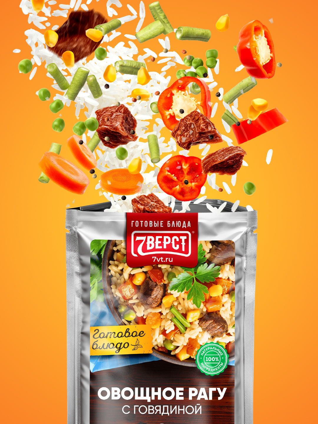"7 верст" - бренд готовых блюд в реторт упаковке. Компания специализируется на изготовлении и оптовой продаже готовой еды для дома, работы и туризма. Все блюда готовятся по собственной, уникальной рецептуре, используя только натуральные ингредиенты: отборное мясо, специи и овощи, купленные у местных фермерских хозяйств.