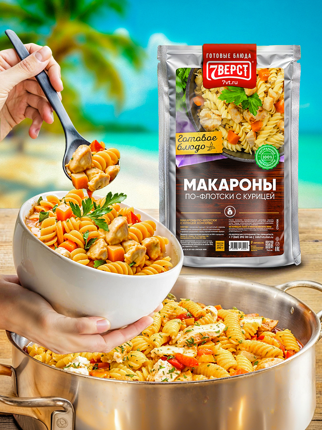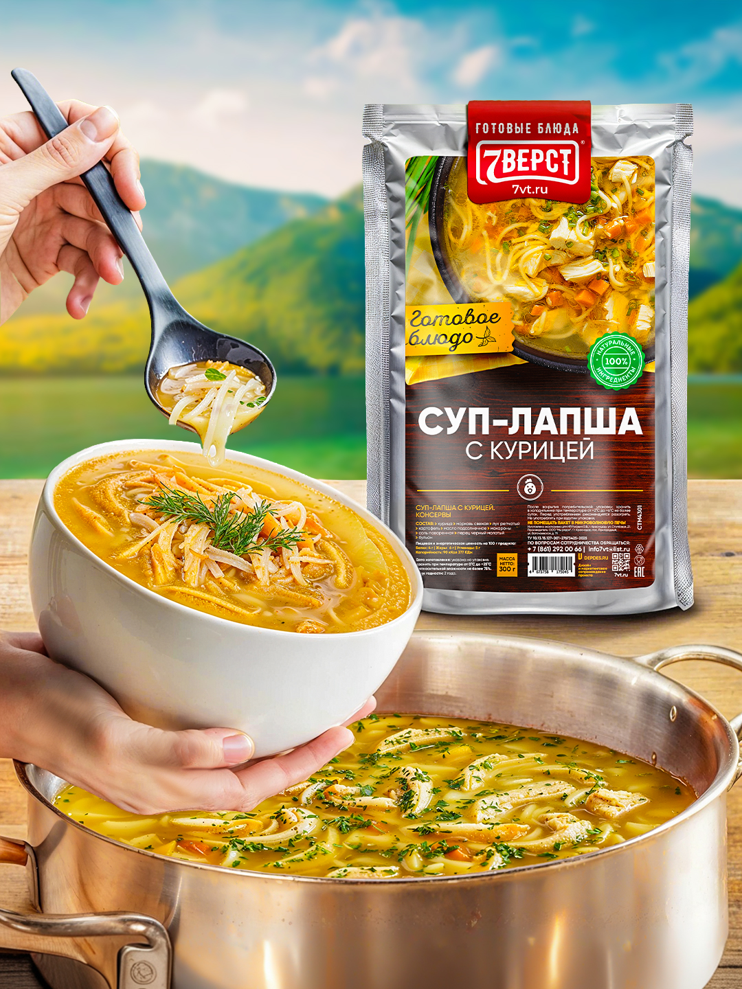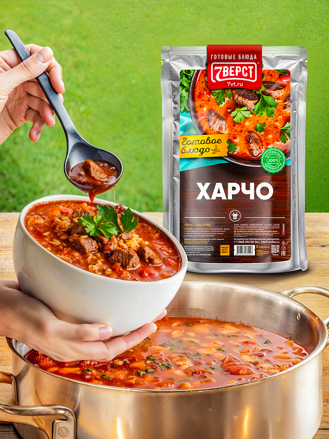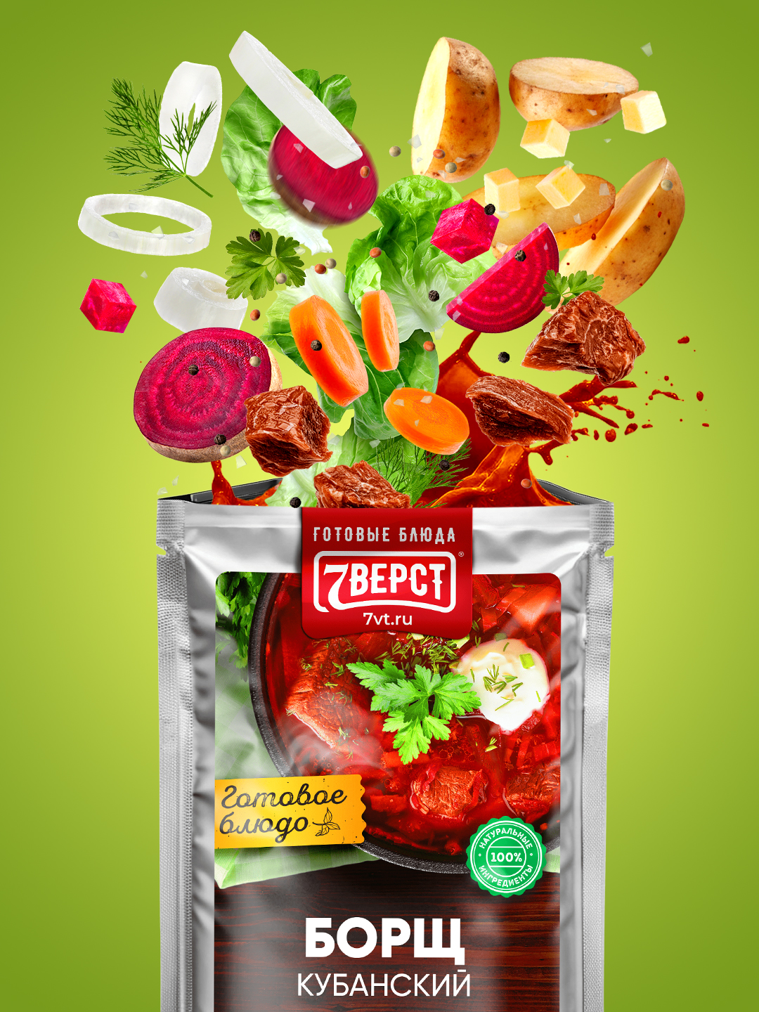 "7 верст" - бренд готовых блюд в реторт упаковке. Компания специализируется на изготовлении и оптовой продаже готовой еды для дома, работы и туризма. Все блюда готовятся по собственной, уникальной рецептуре, используя только натуральные ингредиенты: отборное мясо, специи и овощи, купленные у местных фермерских хозяйств.