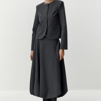 Юбка-баллон миди из костюмной ткани (серый)