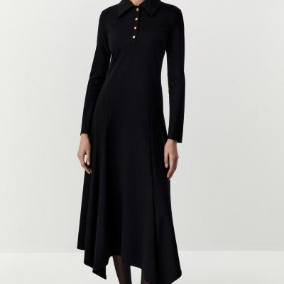 Платье макси с клиньями и воротником поло (черный)