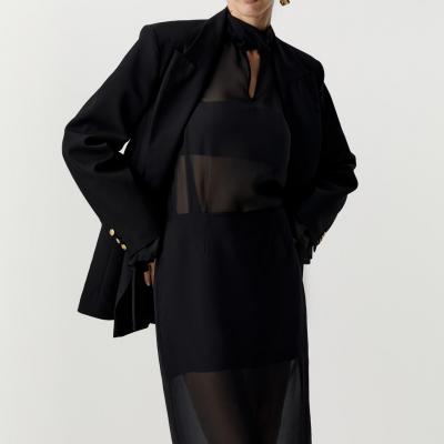 Пиджак двубортный с декоративными пуговицами (черный)