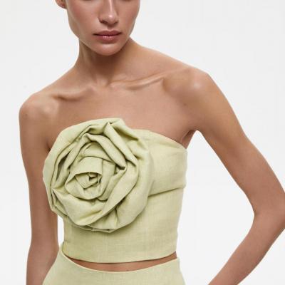 Топ с декоративным цветком изо льна