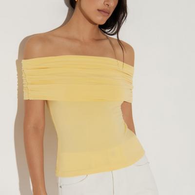 Топ со сборкой и спущенным плечом