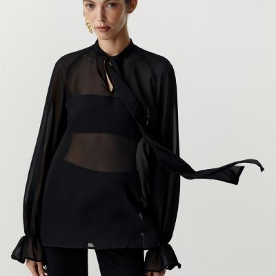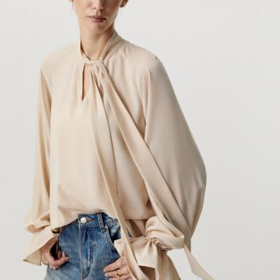 Блуза в стиле бохо из шифона (Светло-бежевый)