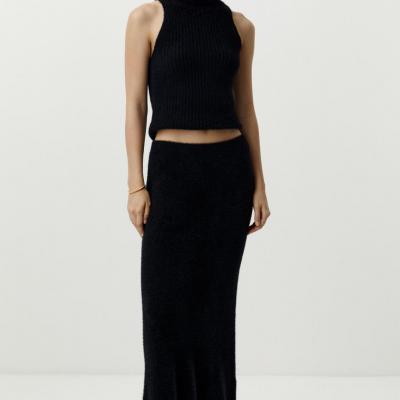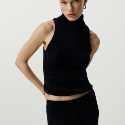 Топ с воротником-стойкой из пушистой пряжи (черный)