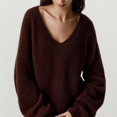 Джемпер вязаный из твидовой пряжи с шерстью (оливковый)