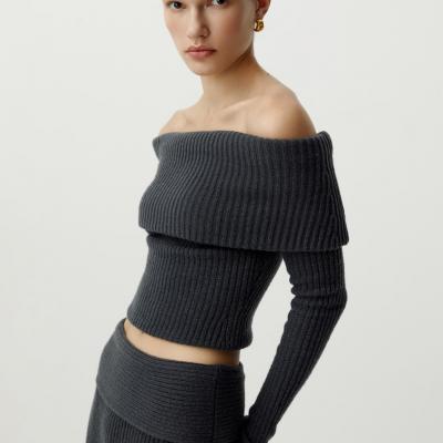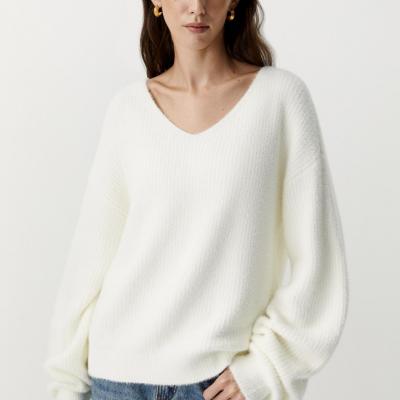 Джемпер вязаный из твидовой пряжи с шерстью (молочный)