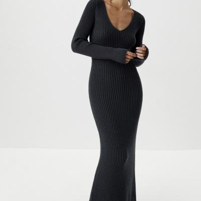 Платье миди вязаное (антрацит)