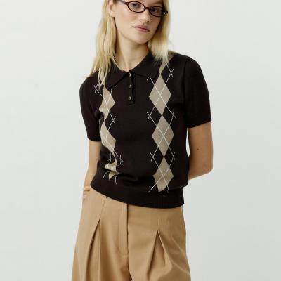Поло с узором Ромбы (темно-шоколадный)