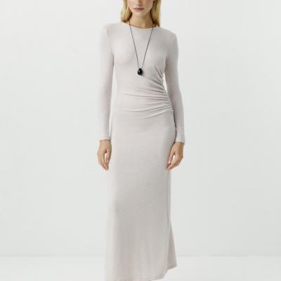 Платье со сборками из мягкого трикотажа (светло-бежевый)