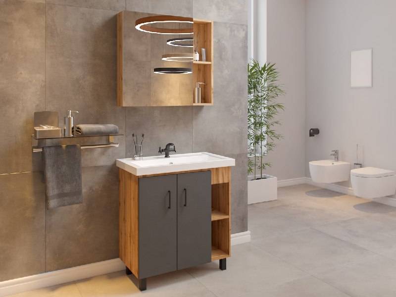 Тумба подвесная под умывальник "Moduo 80" Graffo графит матовый В2 Домино