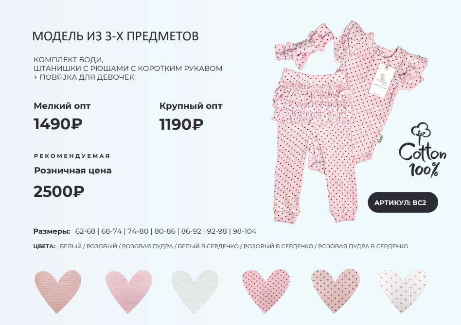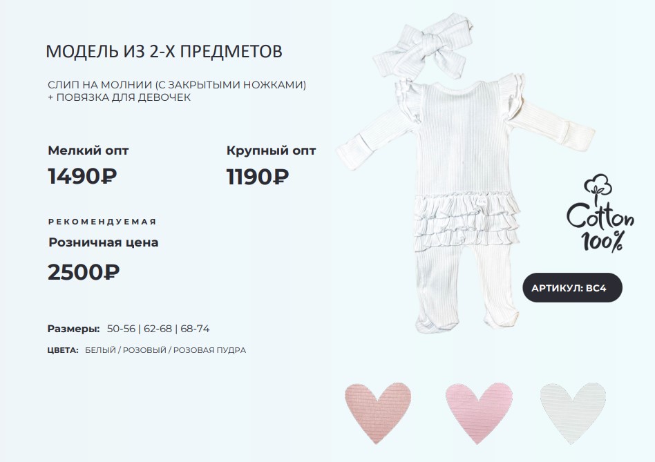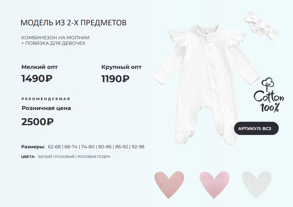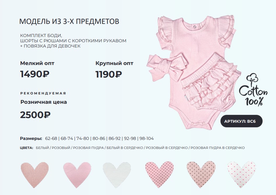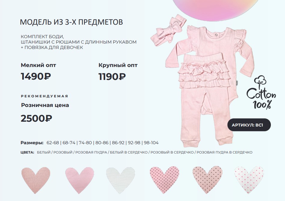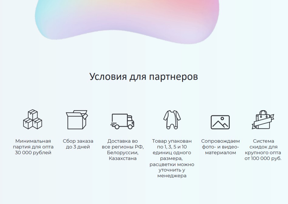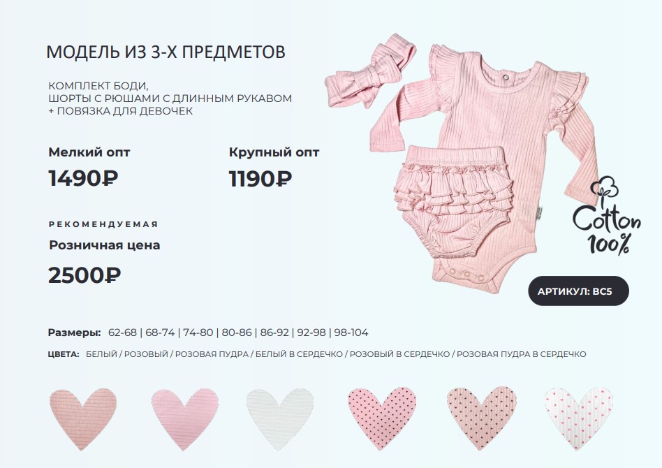 Российский бренд детской одежды. Продукция сертифицирована в РФ и прошла испытания. Собственное производство и экспериментальный цех. Уникальные модели с проверенным высоким спросом. Регулярные новые коллекции. • Минимальный опт от 30 т.р. Поддержка фото- и видео материалами. Стильная матовая упаковка. Высокий контроль качества продукции.