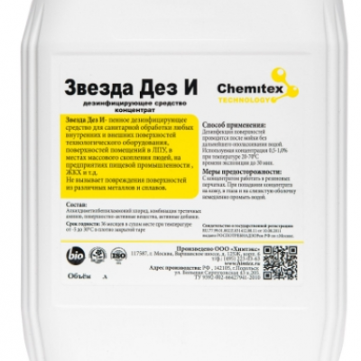 Звезда Дез И - Жидкое нейтральное дезинфицирующее средство на основе комбинации ЧАС и гуанидинов