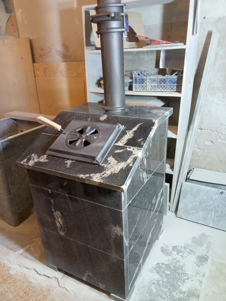 2. Изготовим теплонакопительную облицовку для банной печи из талькохлорита или змеевика. Облицуем любую банную печь от металлической до чугунной. Закажите по индивидуальным размерам или выберите из наличия в цехе.
