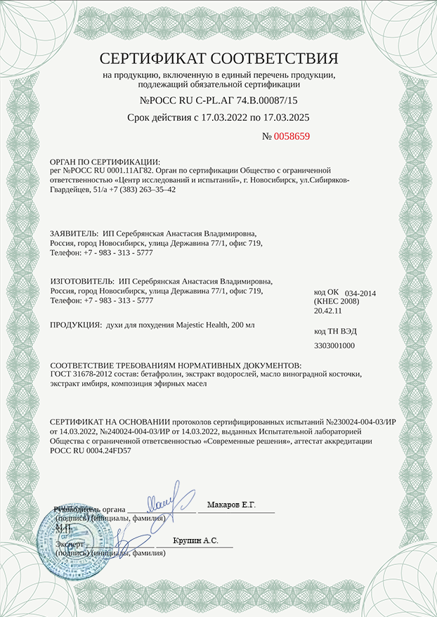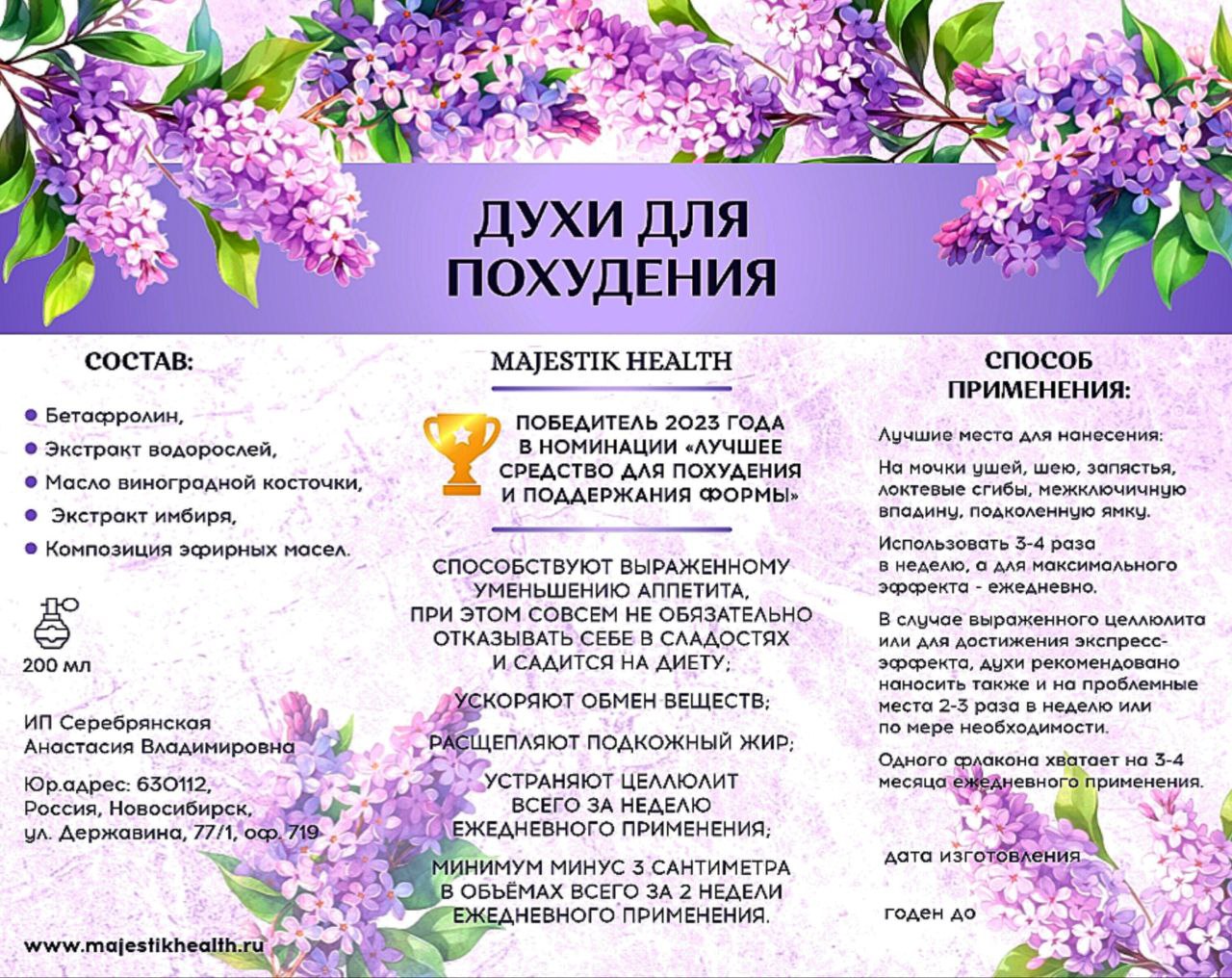 Собственное эксклюзивное внеконкурентное производство Антицеллюлитных духов для похудения. Победитель "Health&Beauty" в России 2023 года в номинации "Лучшее средство для похудения и поддержания формы". Одного флакона хватает на 3-4 месяца ежедневного применения.