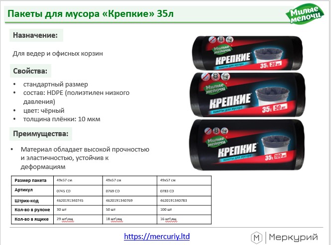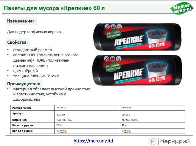 Динамично развивающаяся с 2018 года компания ООО «Меркурий» является поставщиком хозяйственных товаров нескольких товарных знаков: Милые мелочи, Мелочи жизни, Королева чистоты, маркировки Акция.
