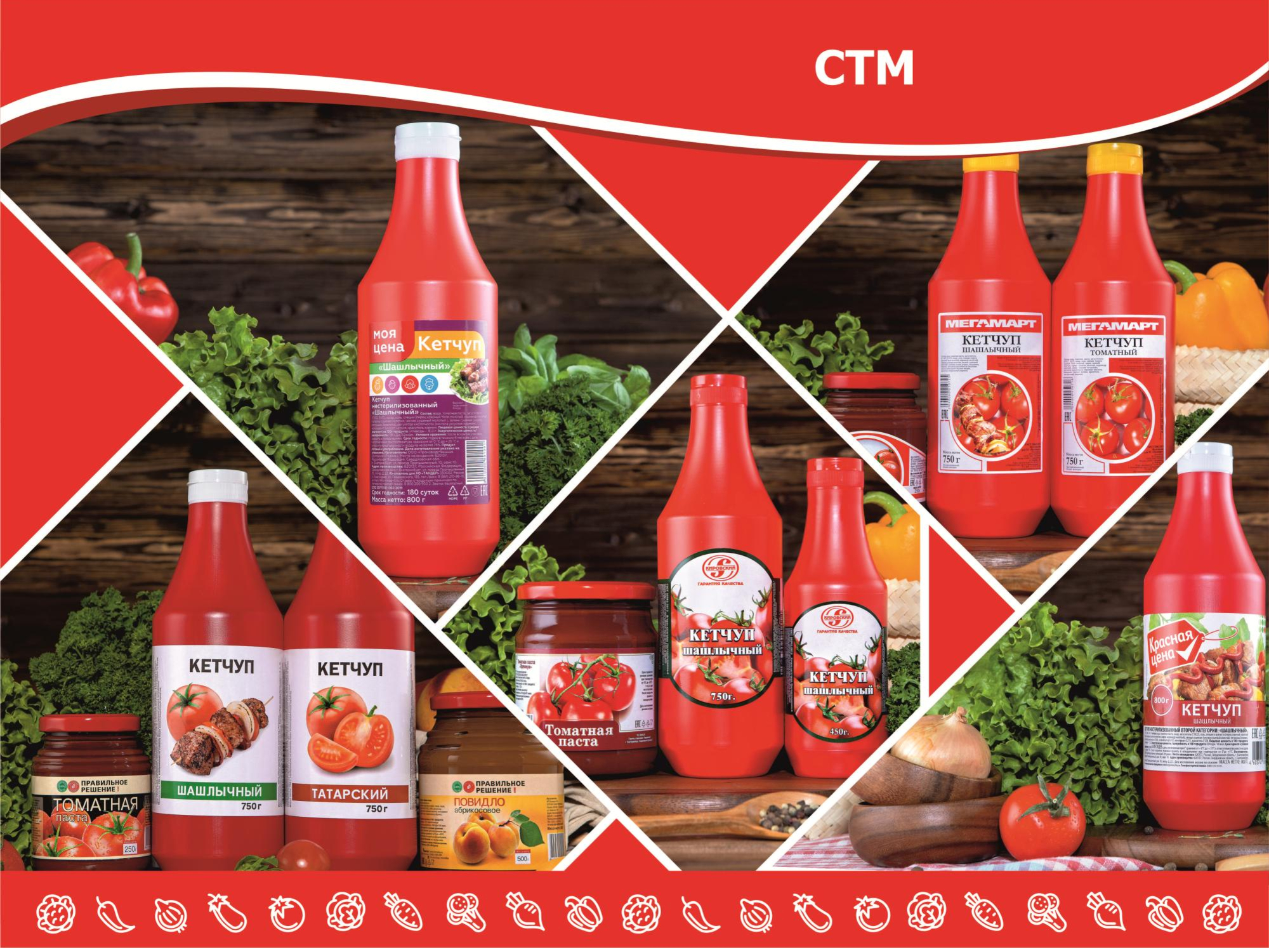 Наша компания выпускает товар под СТМ крупнейших федеральных торговых сетей: "Магнит", "Пятерочка", "Монетка", "Доброцен", "Кировский" и др. Мы предлагаем полный цикл по выпуску продукции под СТМ, от разработки оригинального дизайна, до фасовки и хранения.