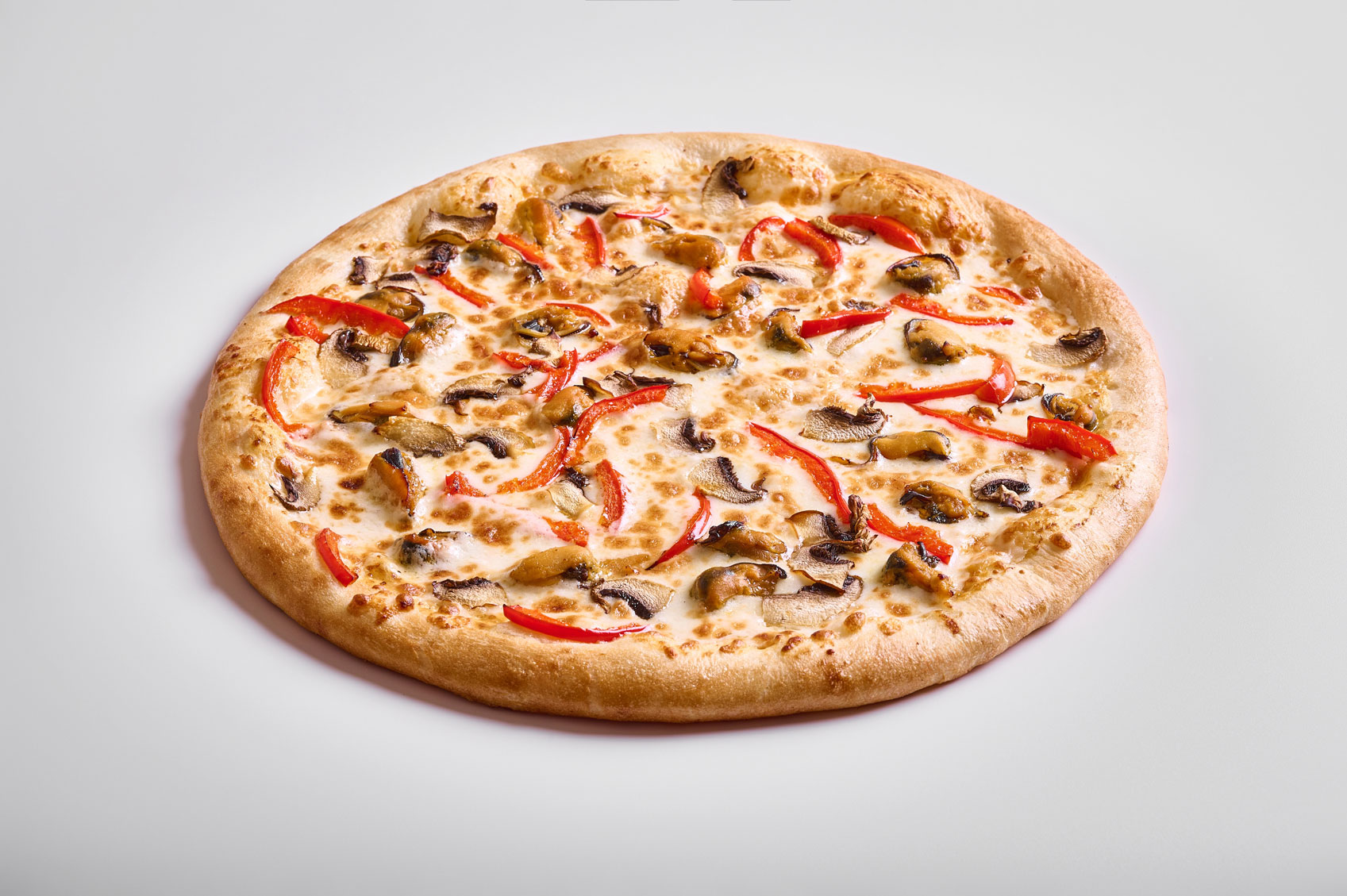 В ассортименте 15 пицц — Ассорти, Ветчина-Бекон, Охотничья, Маргарита, Грибная, Пепперони, Болоньезе, 5 сыров, Мексиканская, Гавайская, Том-Ям, Русская, Азиатская, Барбекю, Сырная и др.